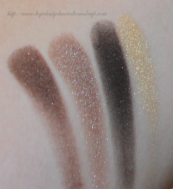I think if you have a well stocked makeup drawer full of taupes, browns, and golds this quad is easily forgettable. I also was not pleased with the fall out factor from the gold shadow. As a tip, always start with your eye makeup first, then apply the rest of your "face" so if you do experience fall out, it will not disrupt the rest of your makeup.
