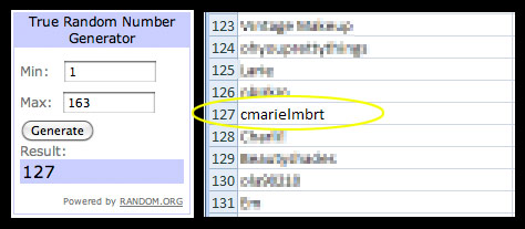 Christina has already been contacted via Twitter. Thank you to everyone who participated! I appreciate my readers more than I could ever convey!